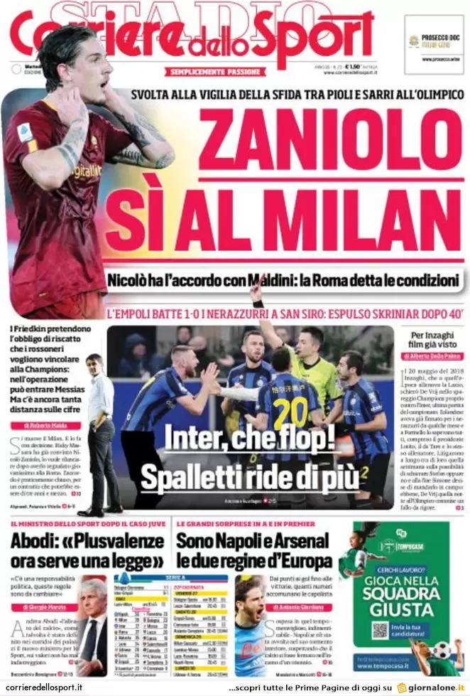 Ecco a voi le prime pagine dei quotidiani sportivi