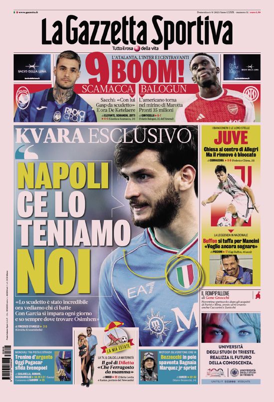 Le prime pagine dei quotidiani sportivi in edicola oggi, domenica 6 agosto 2023.