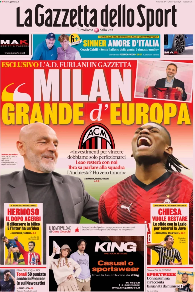 Ecco le prime pagine dei quotidiani sportivi in edicola oggi...