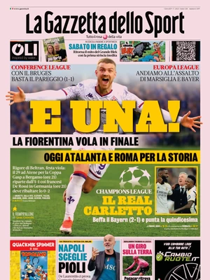 Le prime pagine dei quotidiani sportivi in edicola oggi, giovedì 9 maggio 2024.